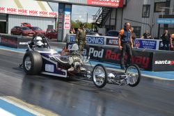 Wild Bunch Racer Steve Heaven is supported by his Dad and former racer Russ Heaven. Based in Spain, Russ was unable to attend the race, but managed to update his blog which makes for an entertaining read. Enduring a number of problems, the team managed, with some borrowed parts and advice over the phone from Russ, to get their slingshot dragster down the track three times. Read much more at Russ's blog which has now reached an amazing 128 episodes since he started it in 2013.