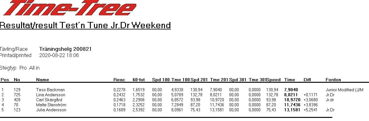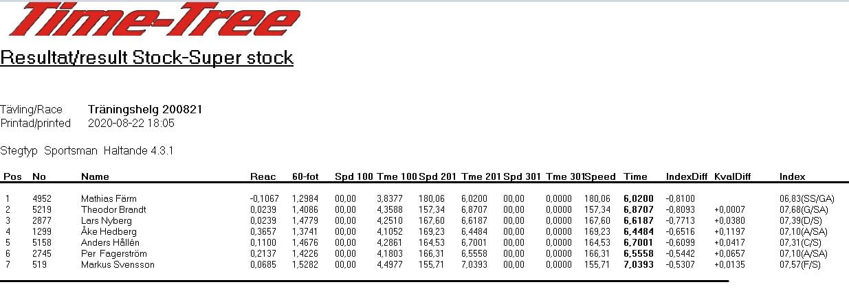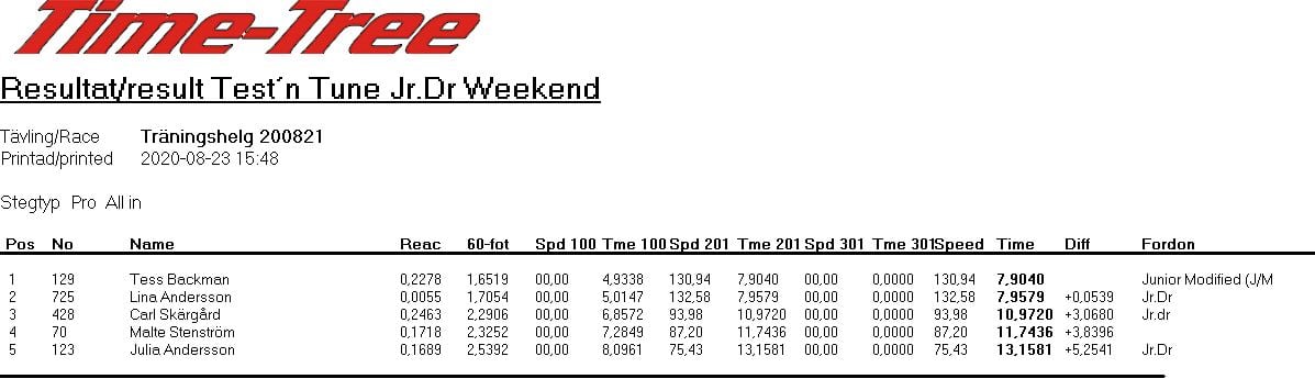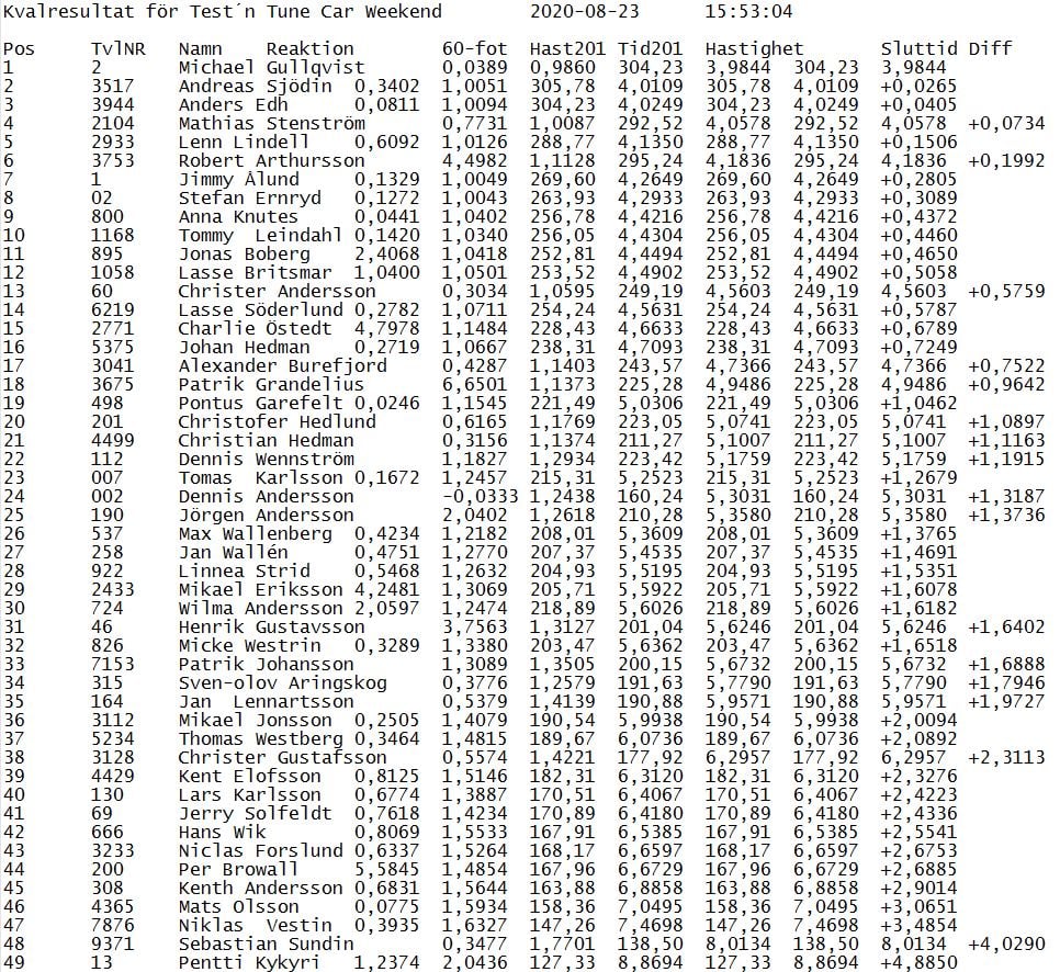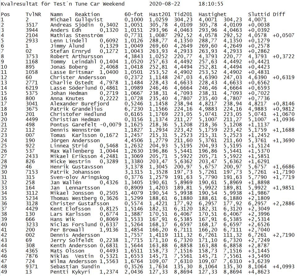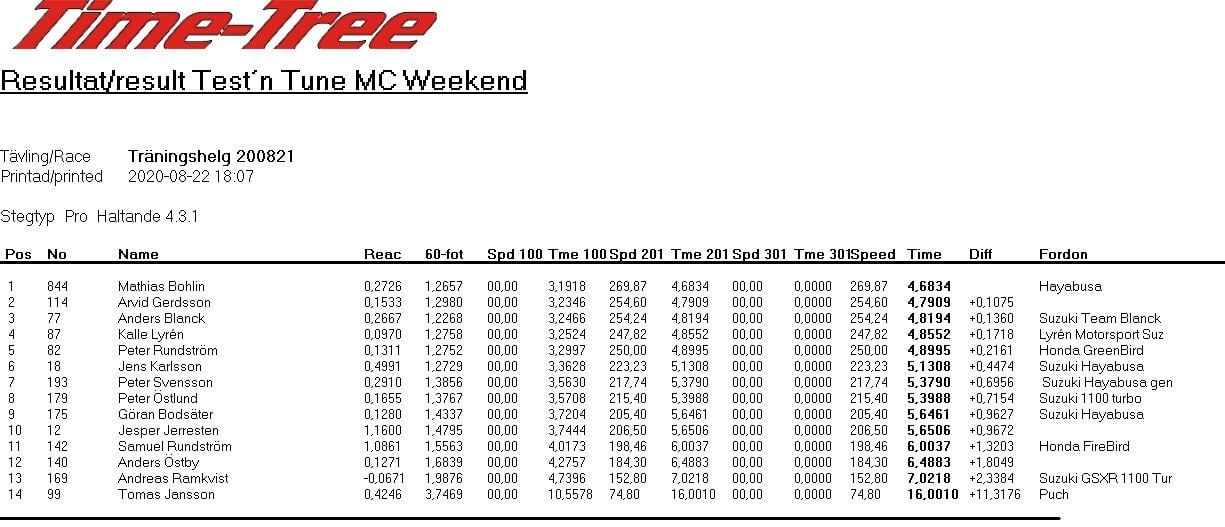 We are grateful to Hudiksvalls Motorklubb for the results of the Test & Tune: