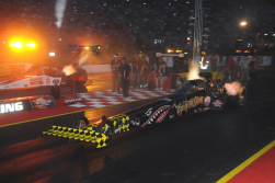 Mike writes: 'Anita told me 'This is just for fun'; those words put a big grin on my face...what an image, Tommi rubbing his hands with glee, seemingly on cloud nine at the thought of being turned loose in Anita’s FIA Championship Winning, 10,000HP Top Fuel car - his first Nitro Fuelled ride in more than six years!