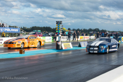 Other notable runs were made in Top Doorslammer by Jere Rantaniemi (who has competed in FIA Pro Mod competition) who ran a best of 4.090/300.12 and Andres Arnover from Estonia who ran consistently in the 4.1s and best was 4.114/305.78. Next quickest in TD was Jarmo Nyberg on 4.289 followed by Jaakko Lauhasmaa on 4.37/271.54, and Mika Eloranta on 4.519/260.81. The winner was Jere Rantaniemi on 4.125/278.11 over Andres Arnover who left on Jere by two hundredths at the start and recorded 4.165/299.5.