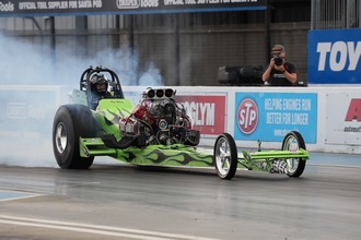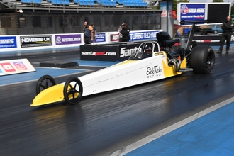 Although Mike Couch was on the entry list for Lil Hemi Hunter, the man in the cockpit of the short slingshot was Thomas Cook Abbott who put in a great performance. He wrote "Thank you so much to Mike Couch for letting me have a lot of fun in his car! I’ve finished the weekend with a couple good burnouts and a couple new friends. My smile hasn’t yet left my face! New PB: 9.10/147mph."