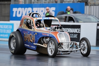 The event was held in warm, muggy conditions with some rain showers causing breaks in the action on Sunday, however the Santa Pod track crew worked hard to ensure a dry surface to race on.