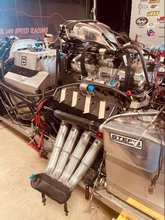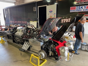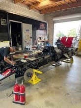 Now late Saturday just before 3rd S/O qualifier, time for fire up and test. No drive in any gear. The trans came out again to be swapped back with Helzapoppin trans and our ATI converter in readiness for Sunday's final fling at launching Banzai like we are a customed to ie 1.16 60ft instead of 1.35.