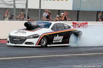 Pro Stock felt like a demonstration race, with only three competitors as a result of skyrocketing expenses and lack of spare parts. It was the better funded teams of multi champion Jimmy Ålund, Stefan Ernryd and Michael Malmgren who made the trip. They put on a fantastic display; the tuning skill necessary to run 6.6s with unleaded gas and no power adders is phenomenal. Jimmy had the best performance in qualifying of 6.659/334.04 but at the cost of a damaged engine when a rod broke in the second session. The final was between Jimmy and Stefan, with Stefan giving him a run for his money with times of 6.651/333.68 for Jimmy to Stefan's 6.692/333.01.