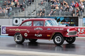 Stock eliminator racer Dan Williams with brother Nic and Lorne Denny crewing, qualified #59 out of 116, -0.753 on his 10.95 index in his A/S Nova 427ci at the NHRA Lucas Oil Drag Racing Series, North Central Division, Battle at the Beech at Bowling Green, Kentucky last Saturday. In round 1, Matt Antrobius strapped a 0.007 RT on Dan's 0.049, Matt winning on a +0.15 over dial. We wait to hear the full story and in the meantime wish Dan, Elaine and the team every success and stay safe at the U.S. Nationals over the next six days.