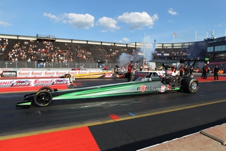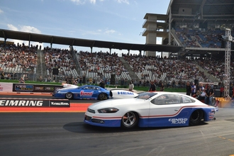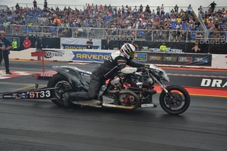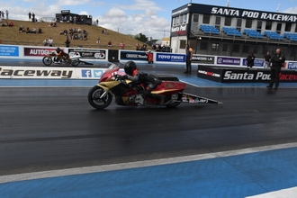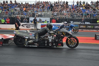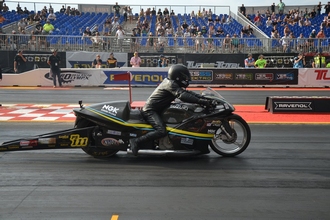Pro Stock Bike had a sizeable field including three racers from Greece and there was also a touch of controversy in eliminations. There were three different leaders in qualifying with Jerome Rougement from France a new entrant to the class and able to get to grips with the hot and greasy Friday track surface.