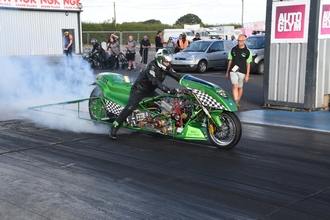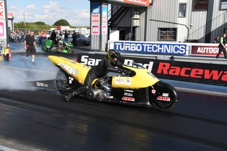 NEM Plant Nostalgia Superstock: Stuart 'Kiwi' Thompson 9.8481/138.53 (9.85) def. Gary Cork 11.8112/112.76 (11.85) (pictured) Gasser Circus: Nick Hewison 10.0640/130.84 (9.90) def. Martyn Hallam no-show