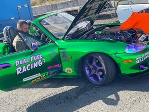 "After scratching heads, we decided to dial 15.60 for eliminations round 1 against Andy Dibley, instead the car did what we didn't think possible and took the European stock 1.8 MX5 record with a 15.41 run, causing us to massively break out but there were most certainly still smiles all around when the car returned to the Dual Fuel Racing pits.
