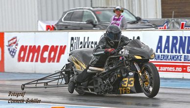 Results can be seen at dragracing.eu thanks to TimeTree. A strong entry of 191 competitors includes five in Pro Stock, seven in Pro Modified, two Top Fuel Bikes, ten Super Twin Bikes, two Pro Stock Bikes and three Super Street Bikes, virtually all of whom will also be competing at the Scandinavian Internationals at Tierp Arena the following weekend. The Top Methanol Funny Car of Linn Engan Fløysvik will be making demo passes.