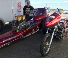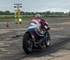 Well done to Funny Bike racer Dale Leeks who attended the eighth-mile XDA Fueltech Bike Bash at Virginia Motorsports Park, qualifying second of five in Pro Xtreme with a 4.068/180.00 and then defeating John Collins in the first round with a 4.059/181.18 before being defeated by Tommy Saxon in round 2 3.975/185.89 to Dale's 4.043/183.77. Dale said "I was hanging out the side to keep her straight and had to manhandle it, but I wasn’t letting off that throttle. I stayed out there far too long and overcorrected it, but I was loving it." Now third in the points, Dale's final race of the series is the DME Fall Nationals on 29th September-1st October.