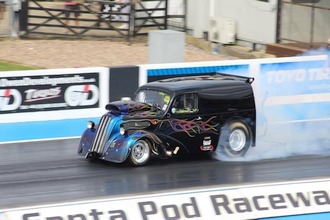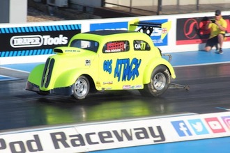 ![]() The most anticipated event of the year for Outlaw Anglia and many other classes and individuals is the now very famous Dragstalgia with Outlaw Anglia fielding a record breaking 31 cars and the world famous Ginner (below left) coming out to play, about time! Another family wedding for me kept me away, Lynn said come to the wedding or get divorced and go to Dragstalgia, tough call! I tried really hard to organise logistics with a plan in place to have my rig there Friday to run one qualifier Friday night, fly home, do the wedding and head back through the night to get there Sunday morning to run in the eliminations but in the end we couldn’t make it all happen and as it turns out it rained Friday night and no qualifying was achieved, so it would have been all in vain lol!