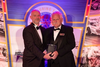 John said: I'm only a little bit excited! It's easier being on that side, I'm quite good at dishing stuff out not quite so clever at receiving it. Thank you for all your kind words guys, I just wanted to check a few things with you (brings out huge list). There's some people of my age here, you may remember lots of things happened when I came to drag racing. It was 1981, the place was, no matter what people say to me Santa Pod is exactly the same as it was 40 years ago, it isn't, it's nothing like the place that I first went to when there were tufts of grass growing through the track - totally different now. I was interviewed by Roy Phelps at Fibreglass Repairs. Roy was on his milling machine, and he didn't stop. He just turned to me and said 'Son you want to be a commentator?' I got the job and I really thought I'd made the big time. I was going to be the voice of Santa Pod. When I got there - whole different ball game, this is what led to most of my early commentaries being 'Red car, blue car, going 100mph on the circuit.' Two of my teachers were John and Liz Ledster. Well, Liz was more virulent than John, he was the strong silent type and Liz was the mouthy one, she gave me a hard time for calling the track a circuit. It would have been natural for everyone there to have got fed up with me and to kick me out. But for some unknown reason, here was a South London boy who knew nothing about drag racing so we'll teach him, and so everyone took me under their wing and I learned. This was the days when I started to say we had a playpen where Bootsie would always try to break the chains on a jet car when it was chained up in the playpen, we had the VIP area - two London Transport buses joined back to back with a sponsor's name on the side (B.F. Goodrich - Editor). Bob had gone across them with a blowtorch welding them, people used to go up them and had soup! It was just a few of them running Santa Pod, Bob Phelps, Roy Phelps, Eileen, Bootsie and a few others. Do you remember Whack on the gate? You paid him money I remember. When I first went to Santa Pod a bit before 1981 I was DJ at Gary's Picnic. So I turned up there in my Transit with the aircraft seats in it and all the kit in the back and this old man threw us out of the truck, climbed all over it, looked behind the seats went in the back – Bob Phelps. Quite extraordinary - but that was my introduction to Santa Pod, then I met Roy and got used to him, and then we had Bo and Don, then we got this guy and from then on, it all changed. Life is so much better. The racing – I was explaining the other day to someone who hadn't been to Santa Pod for years, 'It's unbelievable now, we've got Top Fuel Motorcycles running fives', I remember being with Ian in Ultimate Street Bike going all over the country at crazy old airfields. We've got Top Fuel cars running three seconds, your wife Susanne is here, Keith, she's done three second runs. And then we have street cars and Ford Pops running sixes. What a sport we're in, I'm so lucky I'm part of it. I want to say thank you to my family it's quite true, the families back you up the whole time, without them we'd be lost. You've heard about my mate Dave who I've worked for for thirty years, really it's only about twenty days I've worked for him. Most of all my mate Mike Knowles who's here to night, he's not been to a Hall of Fame thing before but we started DJing together in 1968.