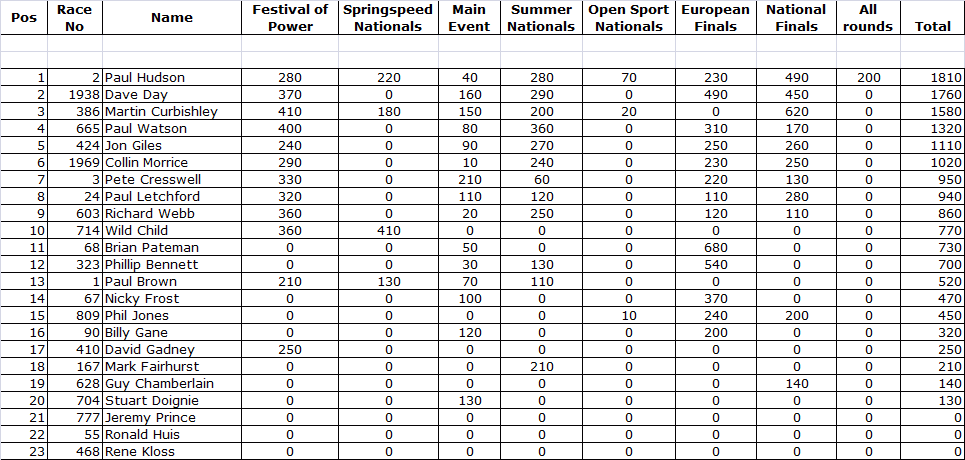 2014 U.K. NATIONAL CHAMPIONSHIP SUPER COMP FINAL STANDINGS