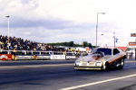 The times he recorded got quicker and quicker, after a first run of 4.2 he ran 4.46/268, 4.06/284 and then, late on Sunday afternoon 3.81/331, the first ever three second run outside of the USA. Motoring News reported 'On deceleration from the last round he endured 9Gs, the strain clearly etched on his face as he later remarked 'I guess I could have stopped her without the chutes but I just didn't feel like trying it'.