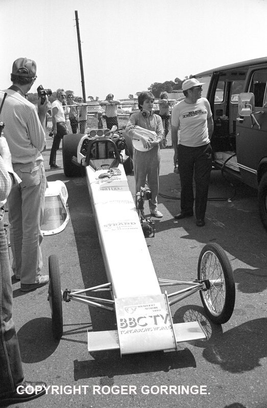 Yes, this was the infamous Tomorrow's World event where Dennis Priddle had rebodied his TF dragster with a computer aided designed and wind tunnel tested streamliner bodywork – without a rear wing. The car was impressive looking and made the front cover of the Radio Times.