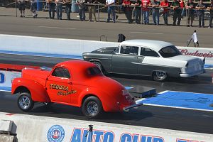 The Willys of Tim Avila against the '55 Chevrolet of Jamie Burt.