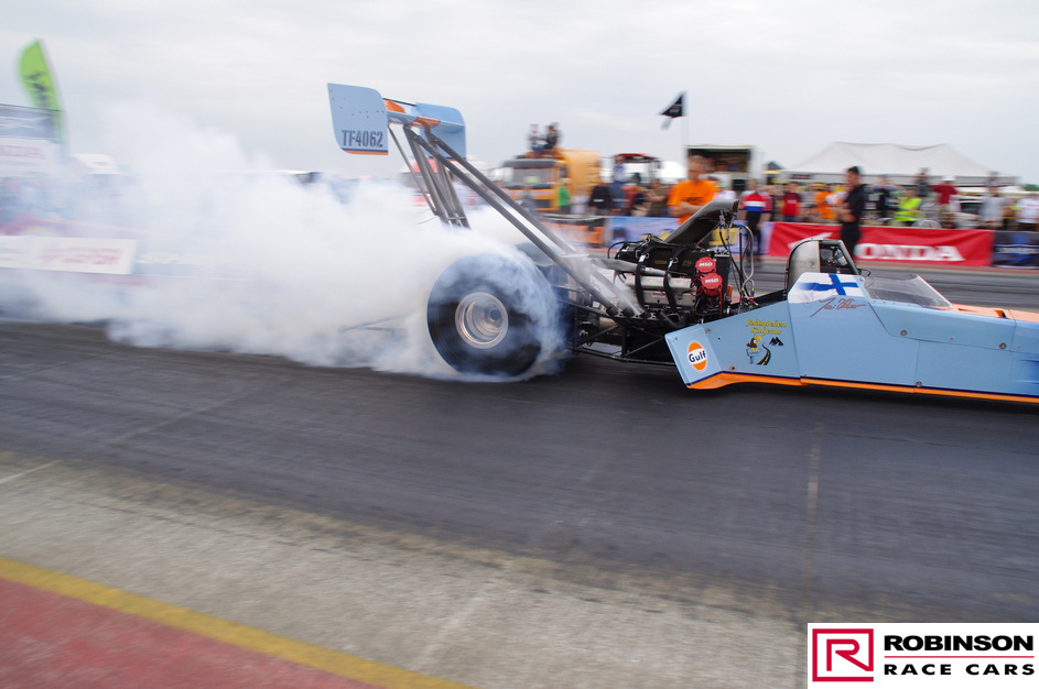 So for us too there was good news and bad. The good was a solid stable concrete track when many considered that to be a perfect surface to race on, the bad was that in spite of the visiting Santa Pod crew’s best efforts the track was green and wouldn’t hold the power of any of the demo cars. So it came down to doing long smoky burnouts – all the drivers could indulge their inner Freddies – and trying to get to the end of the track without kissing both guard rails.