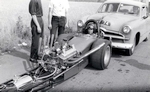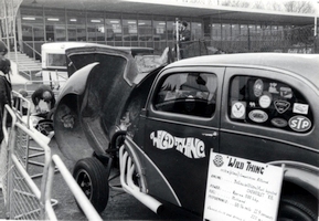 Despite being popular with the crowd and other competitors we found it impossible to sell ‘Wild Thing’. Having already accumulated parts for a new car amongst which was a small block Chevy 283 cu in engine from a 1957 Corvette, I decided instead to build the Chevy engine and fit it to the Popular which was nearer to the concept of a Gas Coupe. Between stopping racing with the Jaguar engine and before starting with the Chevy, I towed for various people. One was John Harrison who I knew and remember John’s car had a reputation as one of the loudest, due to him running so much blower pressure. We went to an ‘on tour’ meet with his dragster using my Zephyr but I didn’t get involved with the car, I don’t remember where the event was. I became friends with Tony and Don Beadle who at the time were teamed up with Allan Herridge. This was after Allan had run his Cadillac powered ‘Pulsation’ dragster. They had decided to build a new Junior Fuel Dragster using an injected Chevy engine. Tony had also formed a company called Speed and Custom Parts, based in Hillingdon to import parts from the States and brought in a second hand Hilborn injection system set up for me. There were three sets, Allan Herridge had one and Alan Wigmore the other for his ‘Itzaviva’ These were older sets and had the intakes at an angle before going vertical with the stacks whereas my intake went straight up vertical with the stacks.