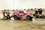 I had Spax adjustable coilover shocks for the rear end from a Triumph Spitfire but I had cut down the springs by half their original length, running a spacer around for the shock to sit in. It all worked really well, I could drive one handed at the top end of the strip without any problems and didn’t have to hang onto the wheel to keep control. I had a hand operated brake, meaning driving it one handed after the finish line when you’re doing about 120mph. That was a happy outcome of the rebuild, always handling just fine, which was very different from when we had the solid axle. One of Nick Pettitt’s DVDs shows it crossing the finish line in 1966, off the ground more than it was on! Pete Atkins of Watford Motor Accessories bought tyres from the Goodyear Racing Department. These were the days before F1 raced with slicks, they were the normal dry weather tyres. Trouble was they were so hard, terrible if you broke traction, they would just spin. Eventually I got slicks when the American serviceman, Ed Shaver who raced a Javelin AMX, brought some brand-new M&H slicks then decided not to use them. So, I brought them from him. In 1972 I fitted a pair of magnesium five-spoke rims, I think these came off Stuart Graham’s British Touring car Championship Camaro. I picked up a fiberglass one piece front end built by Jerry Jackson and Dave Cottingham of the Northwood Racing Team. They were Jaguar fans and in 1967 had a 3.8 E Type engine in their Ford Popular Altered called ‘Purple Passion’, which produced more power than our 3.4 twin carburettor engine, even with a C-type cylinder head and reground camshafts, we could never keep up with them. That was another reason I wanted to update car and the small block Chevy was so universal at the time especially in Gassers.