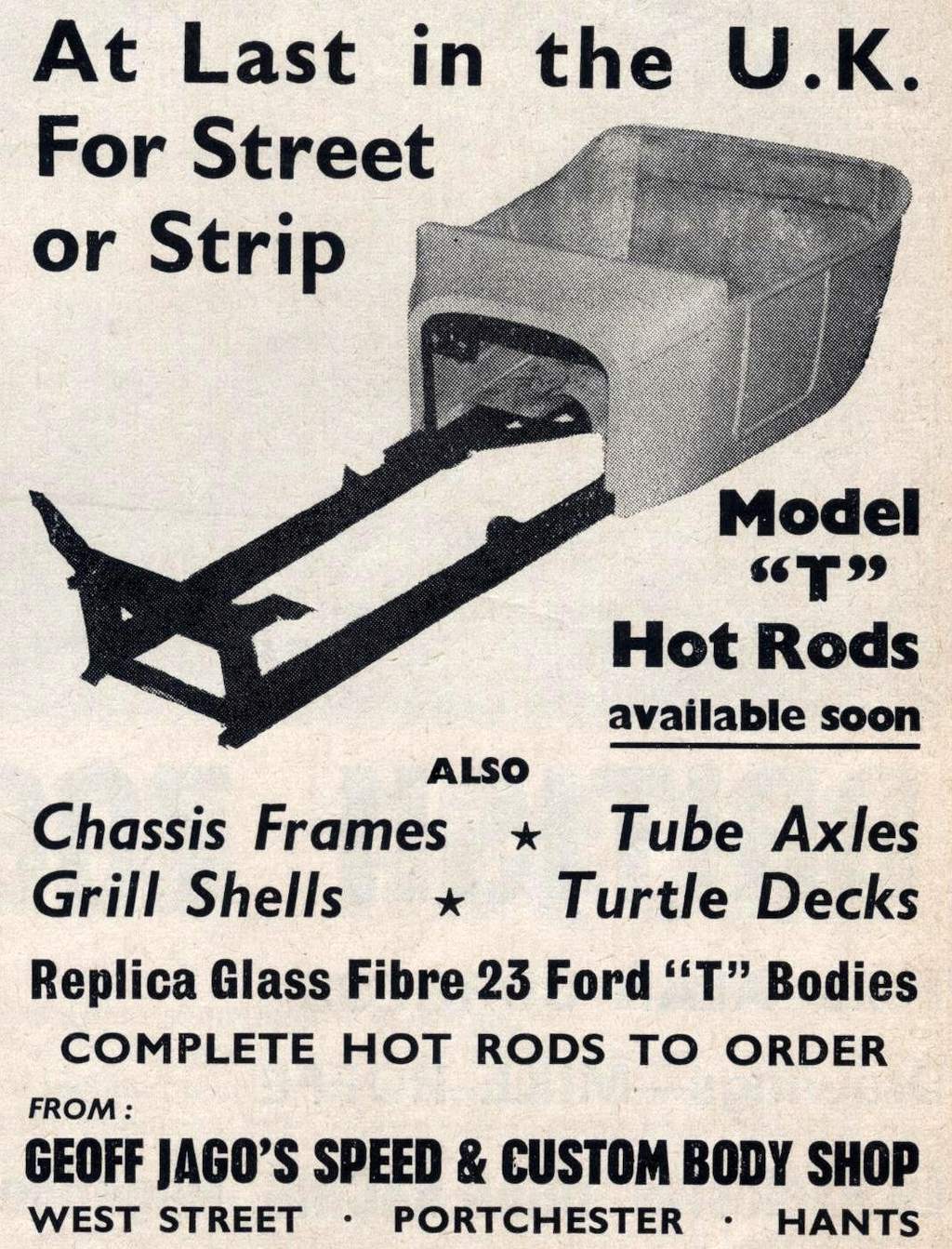 As told exclusively to Geoff designed and built a mould for a Ford Model T body, building a hot rod that he displayed at the 1965 Blackbushe Drag Fest, but it did not run. Advertising in Drag Racing & Hot Rod Magazine, national newspaper coverage and display at the International Racing Car Show helped spread the word. Geoff also got his first hot rod registered for road use. Within years he had sold hundreds of T buckets, many of which became used for drag racing, and Geoff became a full time hot rod builder. Glass fibre just came in at the right time when I was starting to make my Model Ts. I made my own chassis, suspension and tube axle and the first one I built had a straight six Zephyr engine, gearbox and rear axle.