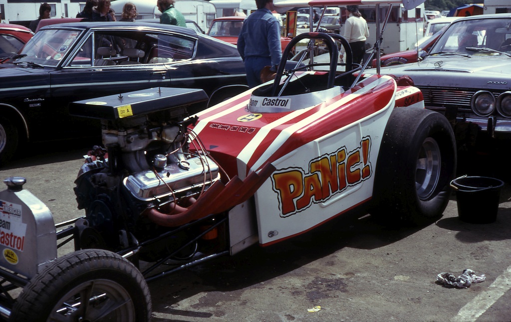 I did a custom paint job on Brian Holmes’ Mini pickup. He was the chief starter at Santa Pod in the mid-sixties. I sprayed it bronze and dessert sand Metalflake, probably didn’t charge him enough for it but again I was trying to advertise my services and he always had the Mini pickup parked near the start line for all to see.