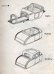 The mould for the Model T body I built from scratch; the bottom piece was actually the roof of a 1930s Singer nine upside down with the windows welded in to get that double curve at the back. I think I narrowed it a bit. All the firewall and around that area was scratch built. I made it about three inches longer on the scuttle at the front to take swinging pedals because much as I like the traditional T with the vertical steering column and the pedals closer as opposed to further forward, they are bastards to drive. They may look good at a show but what I wanted to do was produce something that people could use every day, comfortably, and different sizes of people too, a six-foot bloke would have a lot of problems, he’d look like a grasshopper with his knees under his chin. That’s the reason I made it that much longer. Even then I get criticised by some people who say, oh why didn’t you make it the same as the original? But when I explained they sort of accepted it I suppose. The only reference I had to make the T body was photographs, there were no drawings or anything. What I used to do was find a side view in Hot Rod Magazine and they’d say he’s got fifteen-inch wheels and I'd scale that down and measure that so I know that’s fifteen inches and I'd put it against the body and it didn’t work out too bad as my T body, apart from the deliberate extension at the front, the width and height and all that was only a half inch different from the original, mind you I can’t remember which way round it was, whether it was smaller or bigger, but a half inch out was nothing and I was pleased with that.