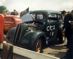 We debuted the car mid-season 1967 with Brian doing the driving, we ran at 3 meetings. The car had no name initially, only the race number C/CA18 on the doors and boot. With a respectable best time of 17.33 it was not too far off our rivals' time of two seconds quicker which had Jag engines or OHV V8s. For 1968 we replaced the Flathead with a 324ci Oldsmobile V8 and named the car 'The Mangler' after Danny Ongais’s Fuel dragster. We cut the rear wings to radius them so we could fit widened wheels, initially fitted with big street treaded rear tyres, then with treaded circuit racing wet tyres bought from Pete Atkins at Watford Motor Accessories. He got a deal from someone and they were only £12. We still used the Westminster axle and instead of narrowing it we widened the wheels inwards. The car sat slightly nose down by accident, although most people said it looked really mean. We had no electric power; everything was done manually by hand drills, files and hacksaws and was very cold in winter. We raced at eight meetings in 1968.