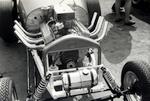 In 1970 Steve Warner joined the team. He was a very capable mechanic and fabricator being a Ford trained mechanic and working at the local Ford dealers Gates where Bob also worked. We changed the name to 'Motor Psycho' after Bob Dylan's song 'Motorpsycho Nightmare'. Utility Paint and Panel of Stotfield, Bedfordshire resprayed it Ford Aubergine while John Collier did the lettering and it was finished off with dark green perspex windows. We debuted it at Martlesham Heath in May 1970 staying in the British Bulldog pub in Ipswich. On the Saturday we couldn't start the engine and discovered the timing was 180 degrees out but it was soon sorted. Alan Wigmore of the NDRC asked us to put posters all around the sides of our push car and to drive round Ipswich to promote the event. We did this for about 2 hours using a lot of petrol. On Sunday we found a cracked cylinder head and had to withdraw from the race which was very disappointing. We'd previously had the cylinder heads milled to raise the compression ratio and using flat top pistons we believed it was at 12-1. Apart from raising the compression ratio, the theory was that with using flat top pistons the fuel mixture was a much more even flow. We had just a little too much milled off the cylinder head which caused the problem. There was an American base nearby and a lot of service men came to the meet, asking us why we were not racing but getting some very nice comments from them on the appearance of the car.