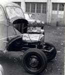 This was our starting point and we towed it with Dad’s Bedford Dormobile bread delivery van to Letchworth some 20 miles away, then to Dad’s Bakery in Baldock. He had a garage on the other side of the wall to the bakery ovens which helped to warm the garage. The car spent some time there before we had to rent a Council lockup on the Grange estate, Letchworth. We stripped out all the old Ford Pop bits and added our own parts. We had a 3.6 litre Ford Flathead V8 engine from a Ford Pilot with the 3-speed gearbox, using aluminium cylinder heads from Sydney Allard with 3 Stromberg carburettors. We bolted an Austin Westminster back axle straight to the chassis, not being in a position to fit suspension at the time. We discovered the Westminster axle looked like an American one as it had an aluminium centre section and was big and strong. In all our years of racing these kinds of cars at that level, we only broke one differential and that was in the dragster with the Flathead engine but this was later on in the late 70s/early 80s.