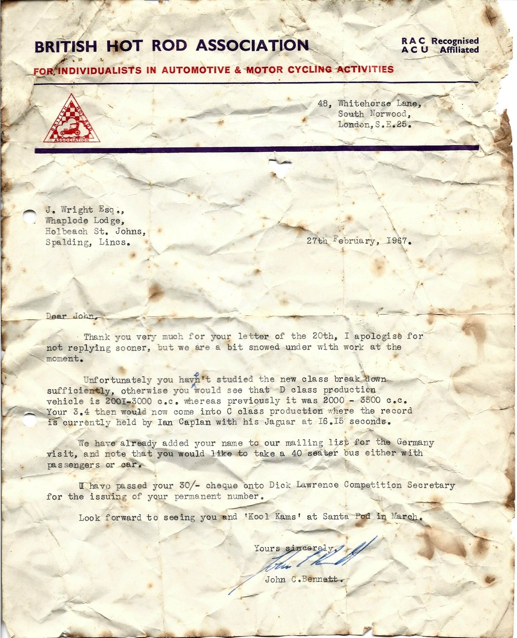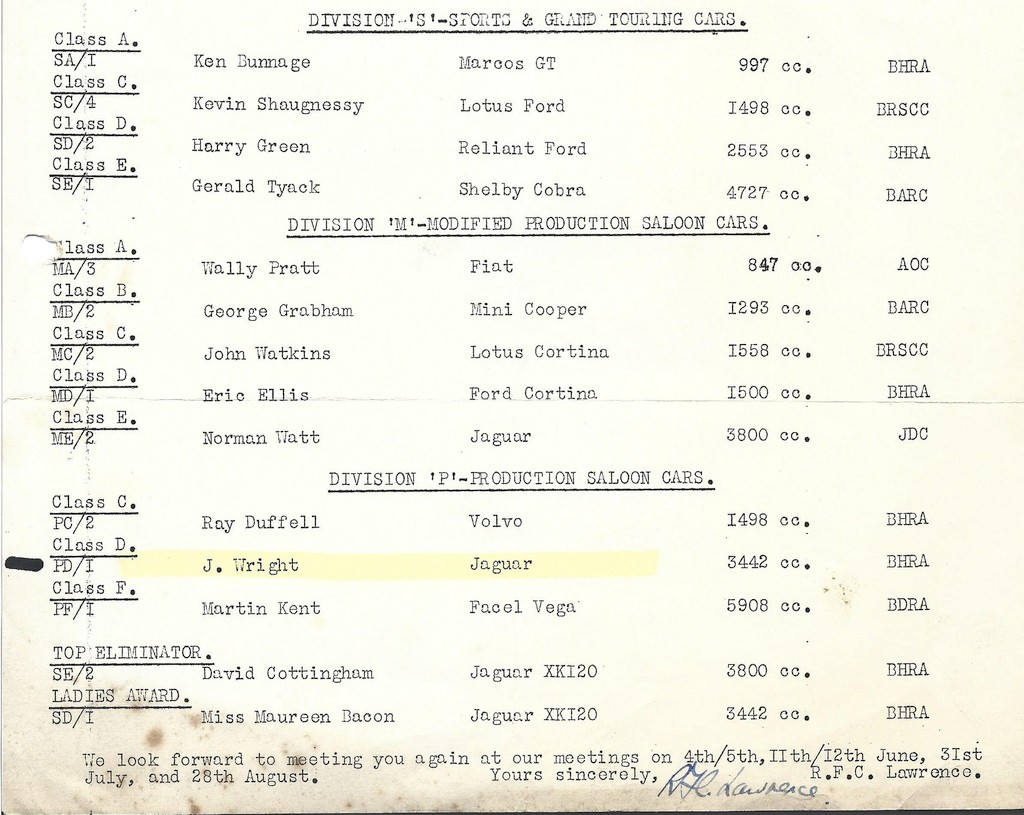 That’s my Jaguar saloon in 1966. In 1968 it got the record for C/Production and held the record for 3 years. I have a BDR&HRA certificate.