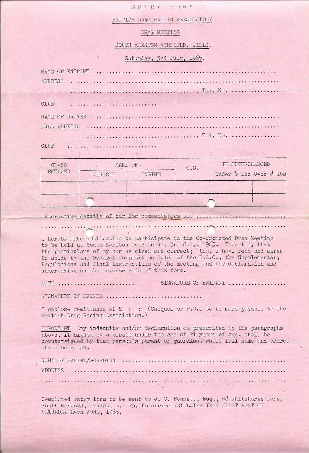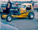 It started out as AE/1 then when Santa Pod got more cars there were of course more classes and in 1967 it changed to CCA/15. My brother Richard was with me some of the time. He had a Model B Ford with a Mercury engine and used to push-start me.