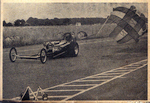 The gearbox was standard Jag 4-speed with all the guts removed but for third and top. There was no prop-shaft as directly behind the gearbox and right between your legs was a universal joint that splined directly on to the pinion of the A90 axle. Needless to say, there was a hefty ¼” plate scatter shield all around the revolving transmission bits and we sat behind the diff with legs hooked over the axle casing. Controls were simple, loud pedal on the right and clutch on the left of the bell housing. No fancy links or hydraulics were used, the clutch pedal was pinned directly on to the cross shaft. As you can imagine, a pretty strong left leg was needed to depress the E-type diaphragm unit and it was either in or it was out. Steering was taken care of by a small aluminium butterfly wheel connected to a Standard 10 steering box mounted upside down under the dash panel with a drop arm down to a long steering link to the front wheels some 10 feet away. A short stubby 3” gear lever was mounted on the top of the diff casing with a remote link to the gearbox. On the dashboard was a fuel-on lever with a cable to a valve that released the pressurised fuel distribution block underneath the carbs. There was a magneto switch marked ‘run’ and ‘off’.