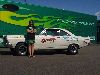 | One naked Pro Modified. Mats was pleased to have got past Tami Brander with a 6.26 and Patrik Wikström with a 6.33, before losing to Andy Robinson by 0.017s at the Veidec Nitro Nationals. | Lena stands in front of the '66 Ford Fairlane that has been resprayed by ace auto artist Ray Hill in a 'distressed' mid-60s Super Stock theme. | ||