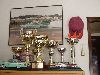 A selection of Mats' trophies and a model of friend Victor Bray's Australian T/D championship-winning car. |