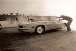 Dave Warne won the first round against Dave Pollen with an 8.20/184, the top speed of the meet, but the cars hood blew off above the SPR gantry and on its return, smashed into the windscreen. The RAC steward ruled that the damage to the screen was too bad to let Warne continue racing but he did allow him to come to the start line and collect his round points by making an easy 15s run.