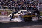 Eliminations were unpredictible, the track surface not being at its best. Mark Gredzinski said in his DRN report: "Graham Barrs was shut down with an oil leak after his burnout so Mick Cheley came in as an alternate with no time to burn out properly. On the run Cheley pulled across the track in his "Mr Shifter" almost side swiping Dave Mingay, but Cheley shut off, ending up back in his own lane in an exciting final match."