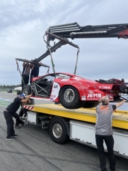 "On the GXP the chassis is damaged as well as body panels. However, we checked the engine directly after the crash and it's looking okay. We will check more this weekend.
