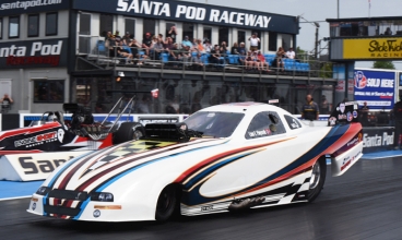 The burn out felt it was like making a burn out on grass, then for first time ever I got wheel speed in the Corvette, however it was from spinning the tyres immediately on the launch. The change from the round before when we were way low in wheel speed was to move a little weight in the car and a little shock change, but we had no runs to talk about because a slick car has nothing to do on a wet race track.